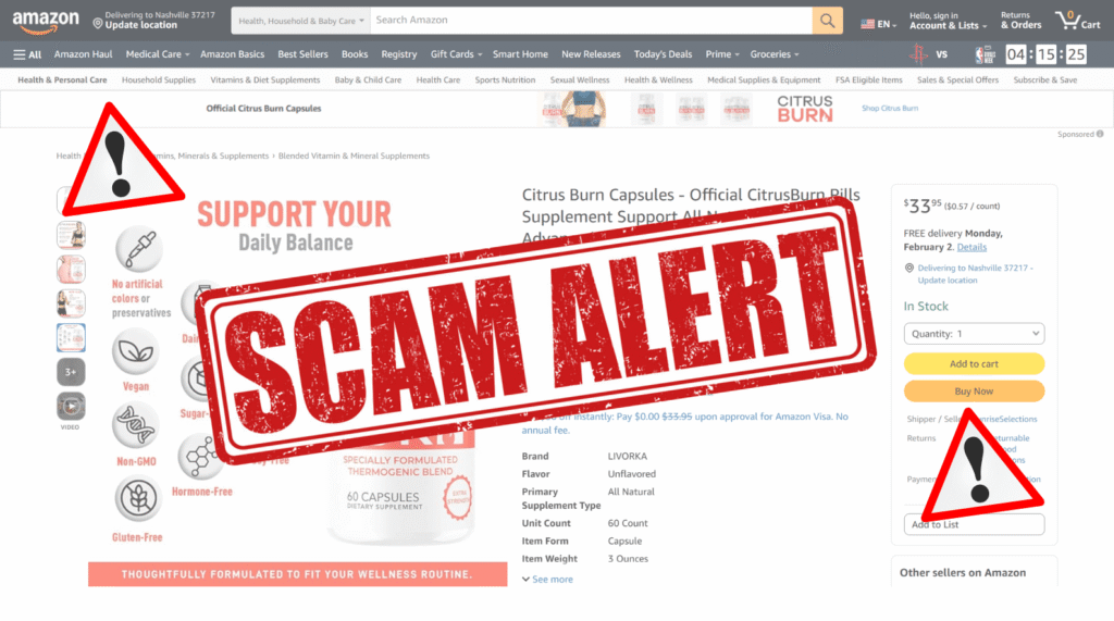 Recently, some buyers reported issues after attempting to purchase CitrusBurn from unauthorized websites or third-party marketplaces, such as Amazon, eBay, or Walmart.